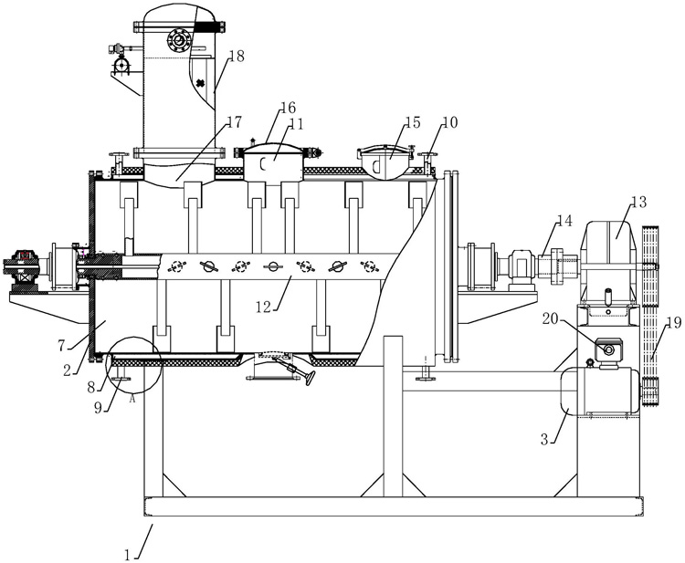 This machine is a novel horizontal intermittent vacuum drying equipment. Wet materials are evaporated through conduction, and a scraper stirrer is equipped to continuously remove the materials on the hot surface and move them inside the container to form a circulating flow. After the water evaporates, it is pumped out by a vacuum pump.