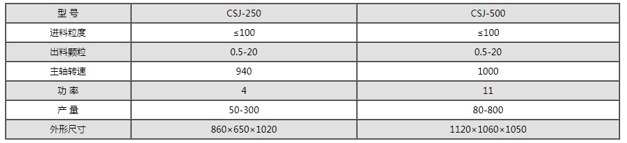 The material is fed into the crushing chamber from the feeding hopper, and through the impact of the blade and the blade holder, the rotating blade and the fixed blade are simultaneously sheared and crushed. Due to the centrifugal force of rotation, the material automatically flows out from the outlet.Technical parameter